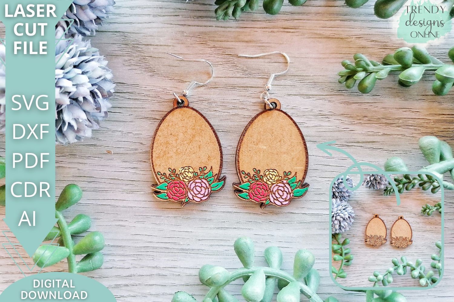 Floral Easter Egg Earrings SVG File, Floral earrings SVG file, Glowforge Ready SVG, Laser Cut Digital Download, Commercial Use