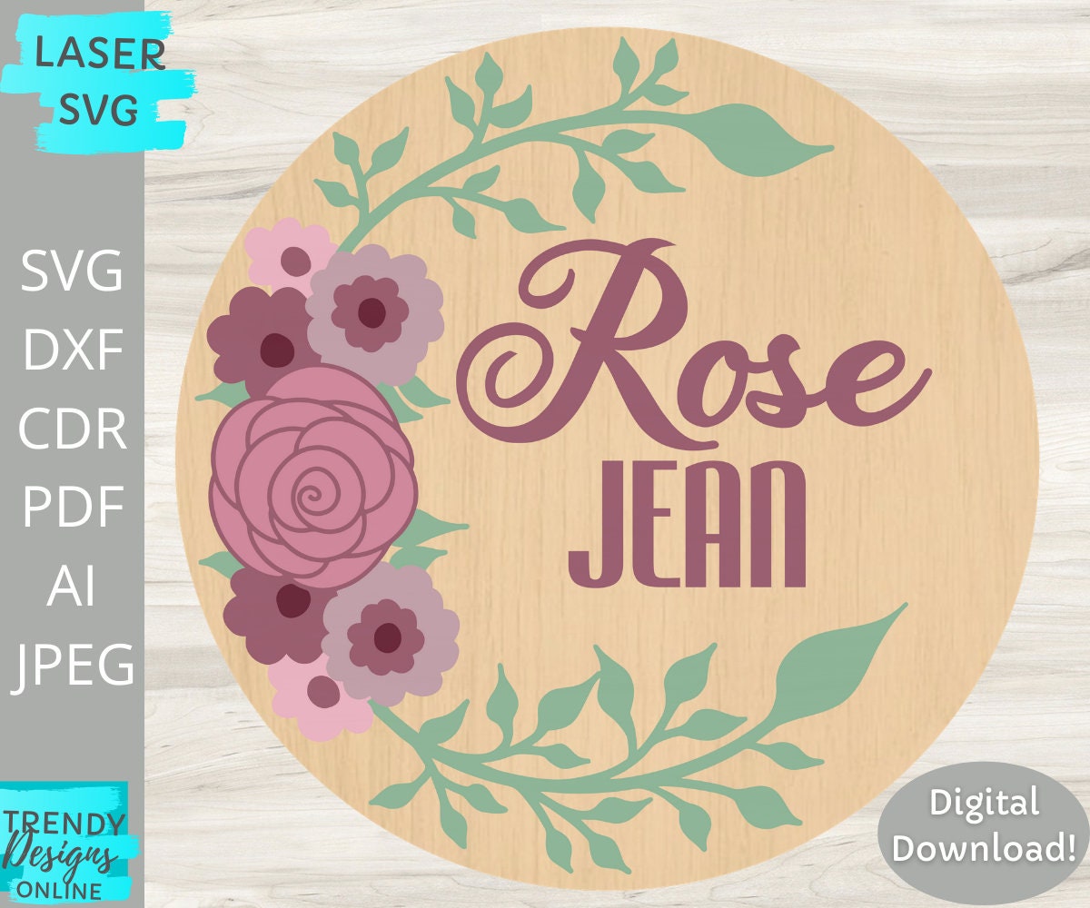 Digital download, Rose Jean Floral Laser svg, Nursery floral files, Commercial Use