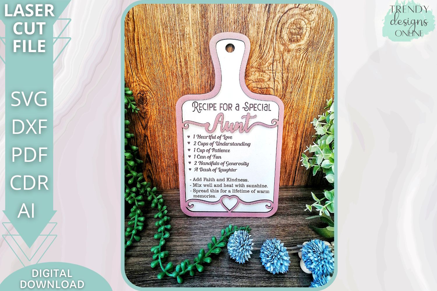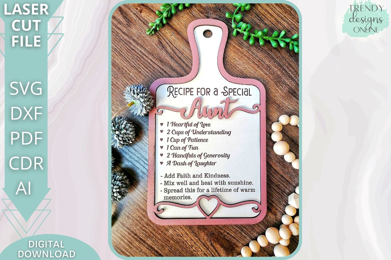 Recipe for A Special Aunt Cutting board svg file, Faux Chopping board svg, Glowforge ready, laser cut file, Digital Download, Commercial Use