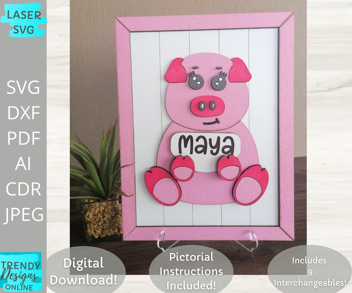 Interchangeable Pig svg, Positive affirmations svg, Nursery decor svg, Glowforge Laser cut svg, Digital Download, Commercial Use- INSTRUCTIONS Included