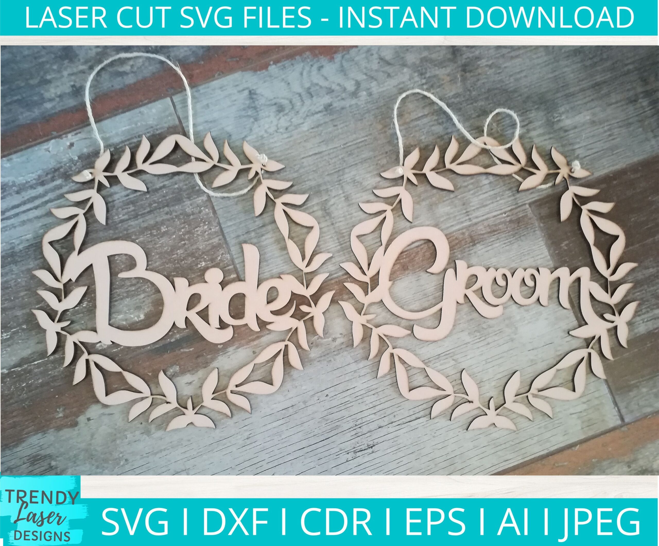 Bride and Groom svg, Wedding Chair Sign svg, Glowforge svg, Laser Cutter dxf Cut file, Digital Download, Commercial Use