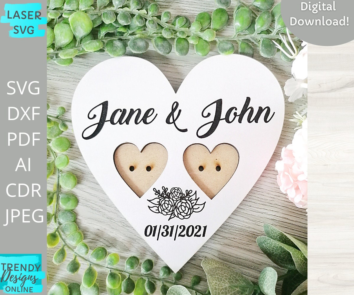 Heart Wedding rings holder svg file, Glowforge SVG, Wedding laser file, Ring bearer svg, Digital Download, Commercial Use